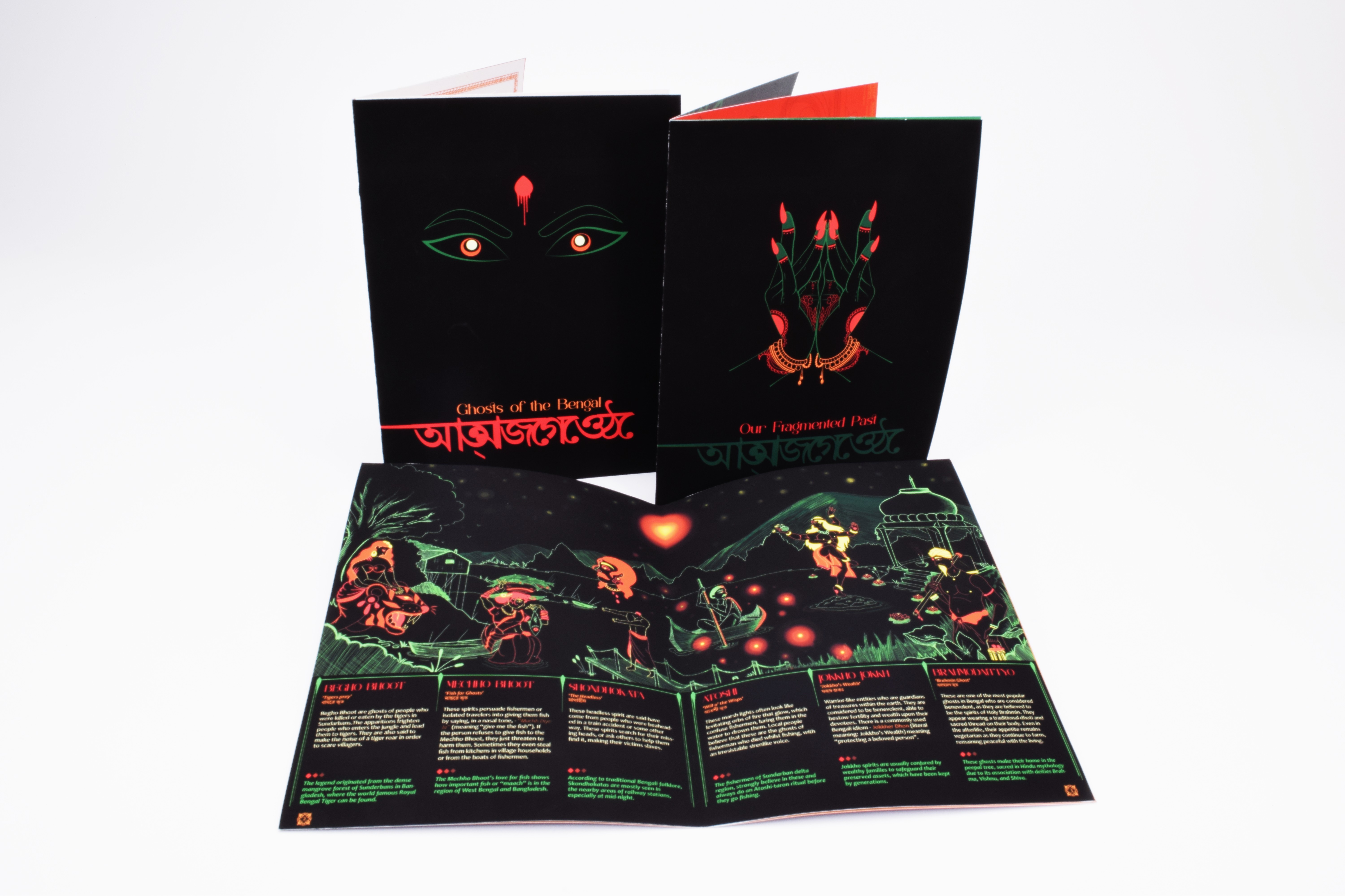 This series of three field guides reimagines the world of Bengali ghost stories through history, categorization, and deconstruction. Each volume explores the evolution of supernatural folklore, classifies spirits across cultural narratives, and reinterprets these stories through a contemporary lens. Blending research and bold visual storytelling, Bengali ghost series reflects on how these spectral tales continue to shape Bengal’s cultural identity.
